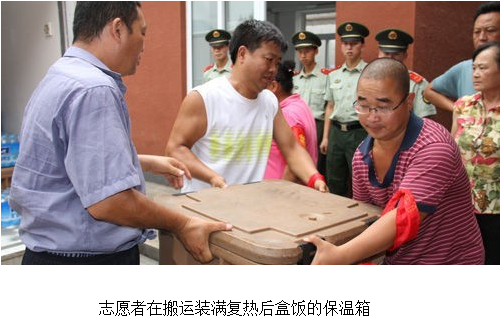 7月28日,兩輛車身懸掛著“湘鄂情和北京人民心連心”橫幅的冷餐車,載著2100盒復(fù)熱后的冷鏈盒飯和礦泉水,從青龍湖鎮(zhèn)駛出,一輛開往房山區(qū)青龍湖鎮(zhèn)北車營村災(zāi)民臨時(shí)安置點(diǎn),另一輛開往青龍湖鎮(zhèn)果各莊村和大馬村,把可口的熱飯熱菜送到“7.21”特大暴雨受災(zāi)災(zāi)民面前。這三個(gè)村子的上千災(zāi)民終于結(jié)束了“一天兩頓方便面”的生活,災(zāi)后第一次吃上了由北京湘鄂情股份有限公司提供的可口的免費(fèi)熱飯熱菜。