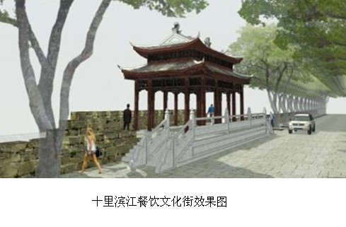 劉剛說,在10公里的濱江大道上,規劃了八個景觀節點,沿江的城墻以及6座城門,“這是在原址上再現清代城門。”