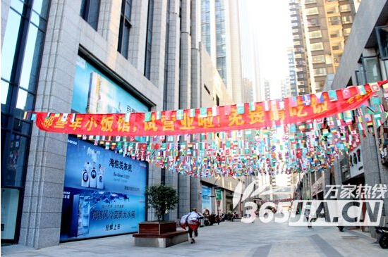免費(fèi)請(qǐng)吃飯的橫幅高調(diào)地掛在新華國際商業(yè)街