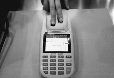 “兩碗紅燒牛肉米粉,46塊錢。”9月1日中午12點(diǎn)多,朝外SOHO伏牛堂米粉店內(nèi),在附近上班的白領(lǐng)王丹聽完店員的這一報(bào)賬后,伸出兩只手指,在黃色收款機(jī)上的兩個(gè)橢圓形藍(lán)色框上停留一秒鐘,就完成了支付。記者了解到,這家米粉店是仍在試點(diǎn)的支付寶指紋支付功能在全國(guó)的首家體驗(yàn)店。