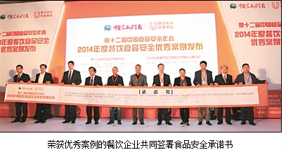 10月18日,第十二屆中國食品安全年會在京召開。由聯(lián)合利華飲食策劃與中國食品安全報社共同主辦的2014年度餐飲食品安全優(yōu)秀案例同期發(fā)布。呷哺呷哺、眉州東坡、旺順閣魚頭泡餅、西貝莜面村、廖記棒棒雞等12個餐飲企業(yè)所提報的案例脫穎而出,榮獲優(yōu)秀案例稱號。
