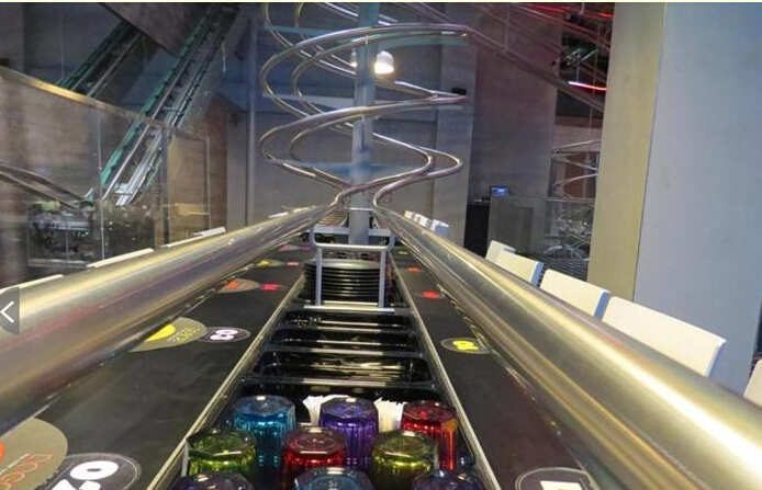 據(jù)報道,該餐廳名為ROGO's,餐廳內(nèi)每張餐桌都配備有專門為其設計的過山車軌道,共30多條,客人通過智能終端點餐,裝在密閉容器中的食物通過這些過山車軌道被投遞到客人的餐桌上。軌道上的傳輸系統(tǒng)保證了食物運輸途中的零噪音,全程自動化操作,非常便捷高效。