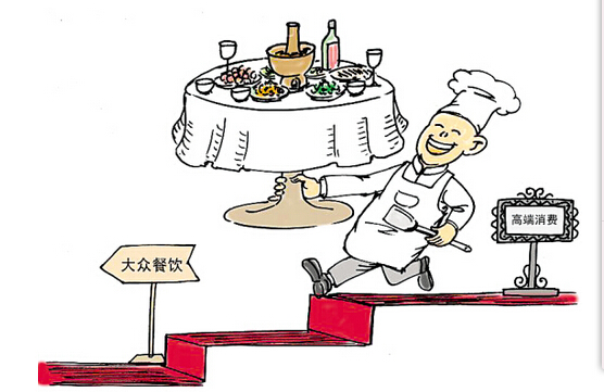 自從八項規定實施以來,節儉風盛行,一些高端餐飲企業遇冷,轉型潮啟動。降低菜品價格、開發親民項目、涉足團購并布局商超以及為百姓增加餐飲以外的增值服務,成為高端餐飲轉型的四大走勢。大眾餐飲正逐步走向臺前,漸成主流。在2014年5月底,商務部還印發了《關于加快發展大眾化餐飲的指導意見》。大眾餐飲發展迎來前所未有的發展契機。