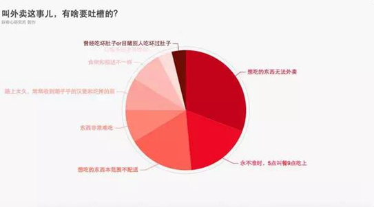 「好奇心研究所」此前做過一次“叫外賣這事兒,有啥要吐槽的?”的投票,我們收獲了共 1871 次表態(tài),結(jié)果表明:對外賣實際口味的投訴遠(yuǎn)遠(yuǎn)少于對幻想中的外賣的憧憬——30.7% 的投票是在抱怨想吃的東西無法外賣;17.7% 在抱怨所在區(qū)域內(nèi)可選外賣太少,想吃的東西都不在配送范圍內(nèi)。