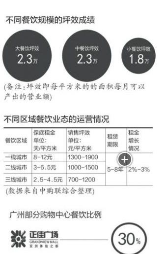 按照徐麗的說法,現在購物中心的餐飲商家只有25%在盈利,另外50%的商家則面臨生存壓力,余下25%則可能有所虧損!皳宜,有的餐飲品牌在廣州最旺的購物中心,月營業額即便做到200多萬,也沒賺到多少錢!