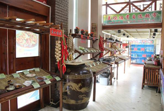 美味故事總共有110道菜品,除成本高、制作時間長的菜品以外,大部分菜都可以在自選超市里找到。超市的全名叫“美味佳肴自選超市”,和普通的明檔不同,自選超市里并不烹飪菜品,只是將做好的樣品擺放在貨架上,標注價格、制作流程,讓顧客在這個沒有菜單的餐廳快速地點菜。