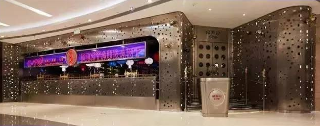 遠處看像盤踞在商場里的金屬洞穴,外圍用不銹鋼緊緊包裹,墻壁上安置了碩大的金銀兩色蜘蛛。在進門處,運用高科技手段,用水幕再現了一個逼真的水簾洞。餐桌上每個蜘蛛都帶上了緊箍咒,這些蜘蛛也成為嘻游記餐廳的標志元素。設計時沒有刻意去塑造西游記的形象,而是用很多插畫來表達現代想象。翻開菜單就像是翻開一本故事書,菜名都非常有西游記特色,例如“俺老孫最牛”、“女兒國的春夢”、“松茸洋芋紫金缽”等。