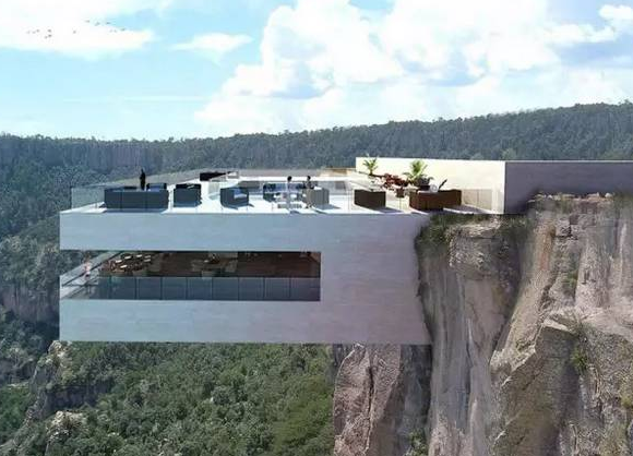 顧客吃飯要玩心跳,有什么辦法?土豪式的空中餐廳太危險(xiǎn),那么在懸崖上“懸空”的餐廳怎么樣?